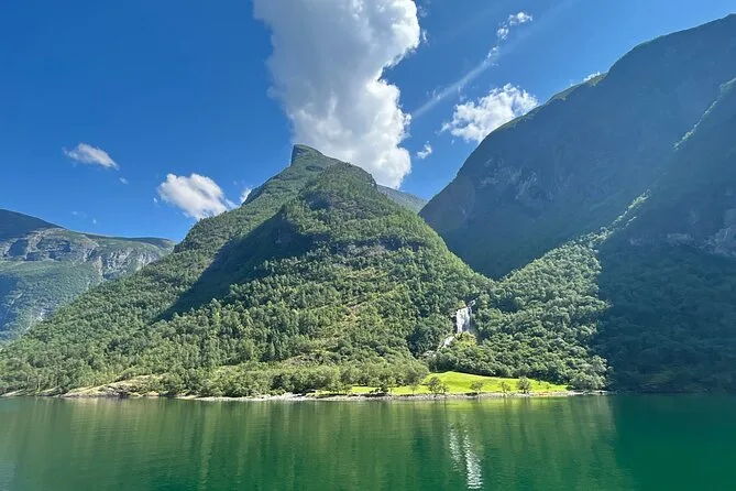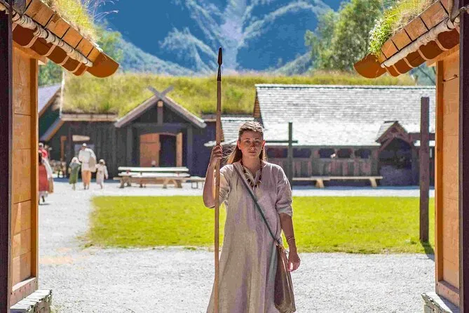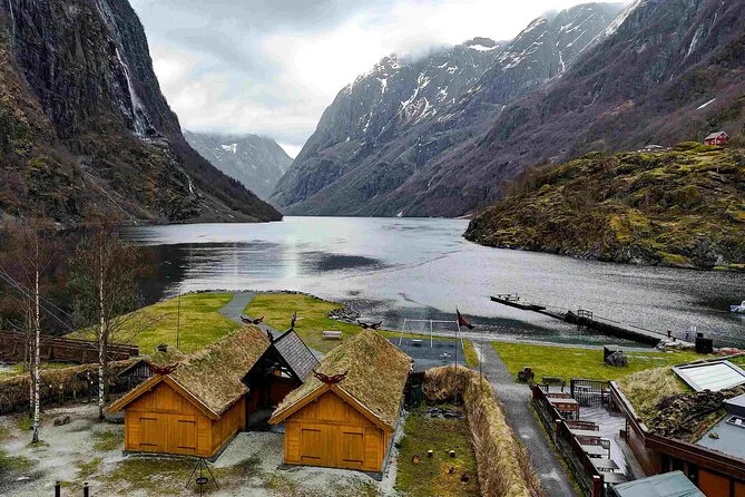 Your day includes pickup in an air-conditioned minibus from Bergen with USB charging ports, entry tickets to Njardarheimr Viking Village, all fees and taxes covered, a guided segment through waterfalls and villages until Gudvangen, plus reserved tickets for both the Nærøyfjorden cruise and scenic Flåmsbana Railway back toward Bergen—with plenty of time along the way for coffee breaks or lunch stops as you wish.