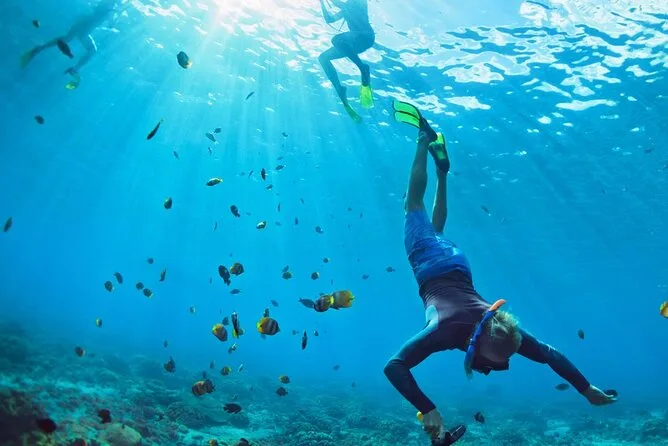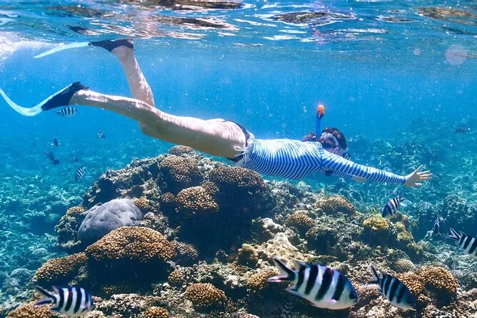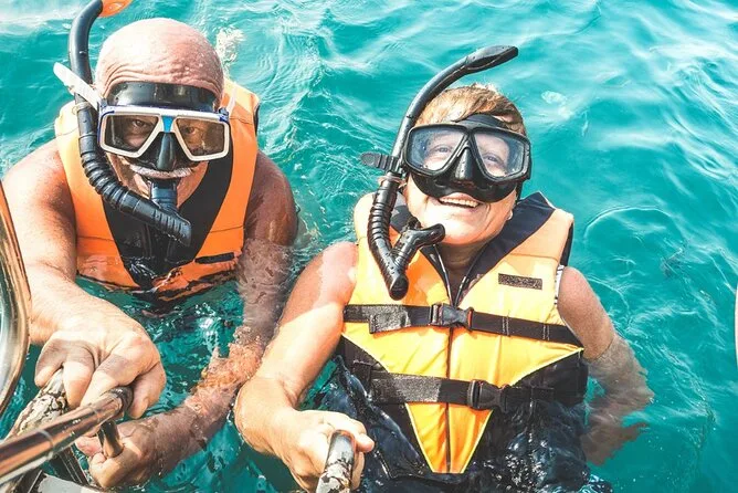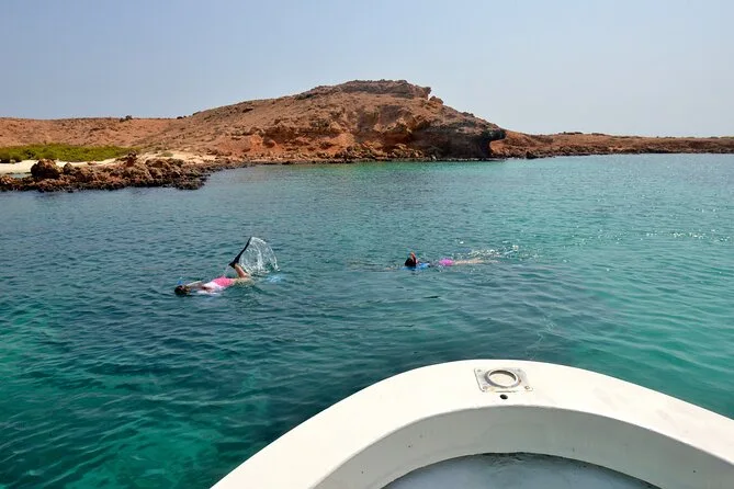 Your day includes fast boat transfers from Muscat to Daymaniyat Islands with all necessary reserve permits arranged ahead of time; full use of quality snorkeling equipment; plenty of snacks and cold refreshments onboard; plus access to an onboard restroom so you don’t have to worry about comfort between swims.