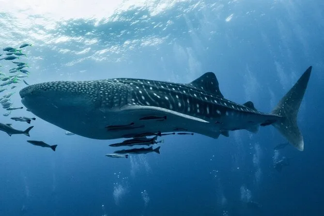 You may see turtles (three species), honeycomb moray eels, sting rays, schools of fish, black tip sharks, and whale sharks in summer.