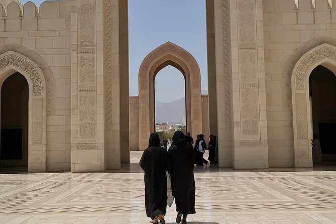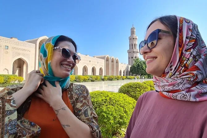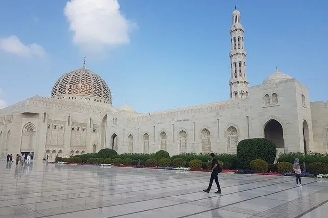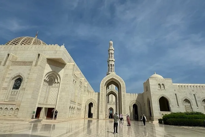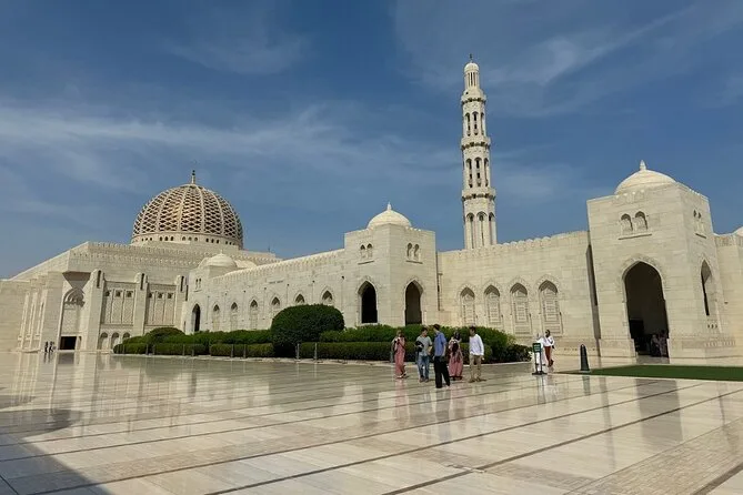 You’ll wander Muscat’s grand mosque barefoot on cool marble, sip sweet karak tea by Qurum Beach, get lost in Muttrah Souk’s scents and colors, then stand beneath royal palaces and ancient forts—all with a local guide who makes every stop feel personal.