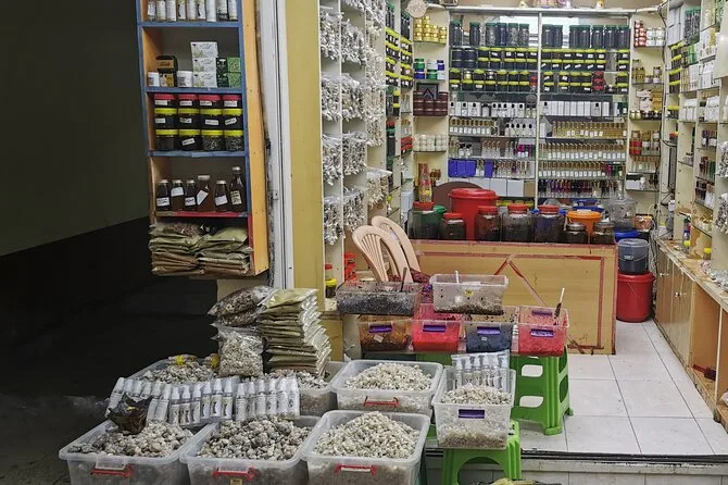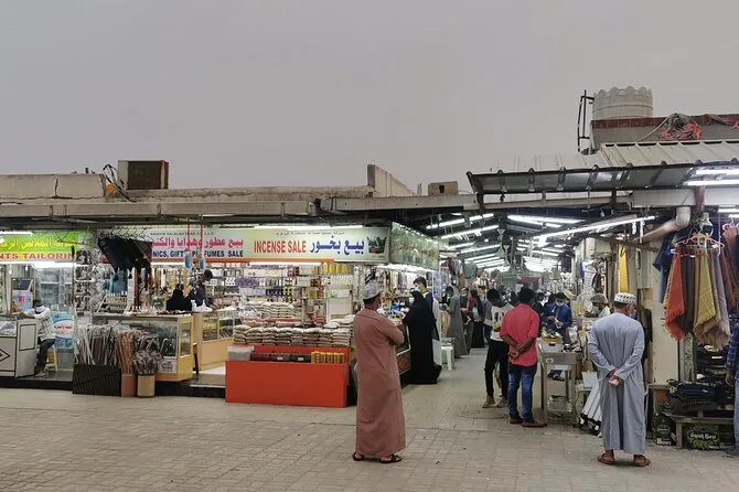 The tour includes a tasting of Omani halwa and coffee; other meals like grilled fish at markets are available for purchase.
