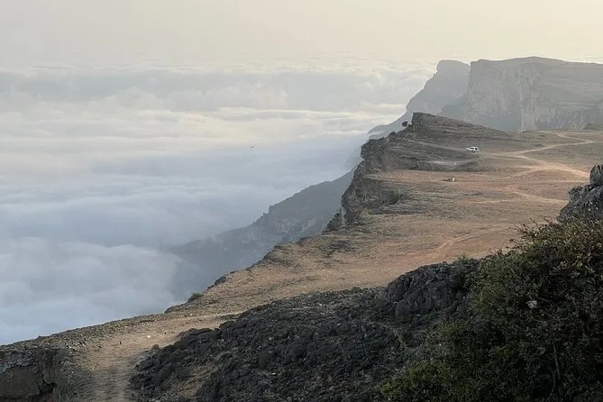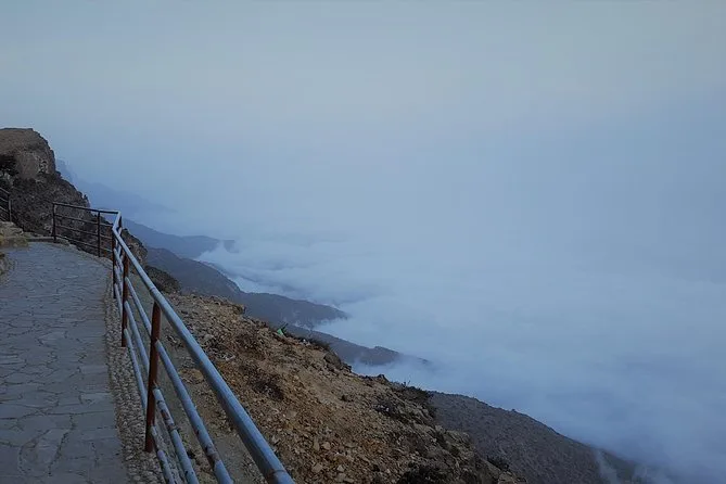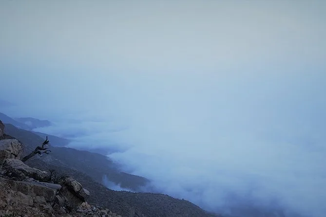 Tawi Atair sinkhole is next — it’s deeper than it looks and echoey down there, almost eerie if you stand close enough to hear your own voice bounce back. Jabal Samhan though… that one surprised me most. The clouds were so low they felt like they might brush your hair if you jumped up high enough (not that I tried). Khalid told stories about leopards living somewhere out there; I’m still not sure if he was teasing us or not.