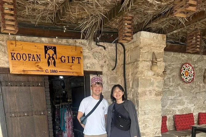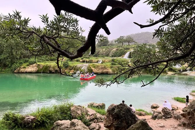 Driving east along the coast, we passed Koofan House (I didn’t go inside — honestly just liked watching the old men sip tea outside) and then hit Taqa Beach. The water looked almost too blue to be real, and seabirds kept darting past while we stood ankle-deep in sand. Khalid pointed out Burj Al Askar — I tried to pronounce it right but he laughed and told me not to worry. Then came Wadi Darbat itself: green even in late summer, with goats wandering around and that smell of wet grass after rain. We rented a pedal boat for half an hour (not included but worth it), drifting under Jabal Qara’s shadow while kids splashed nearby. If you’re lucky there’s a waterfall — we caught just a trickle but it was enough.