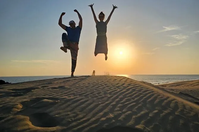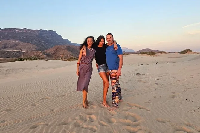 You’ll feel Dhofar’s contrasts on this private safari: ancient Taqa Castle’s cool stones under your hand, birds wheeling over bright beaches, Wadi Darbat’s green valley and waterfalls, mountain air atop Jabal Samhan, and finally golden sand dunes by the sea at sunset. Expect laughter with your Omani guide and moments of real quiet beauty you’ll carry home.