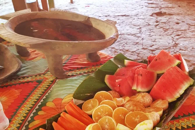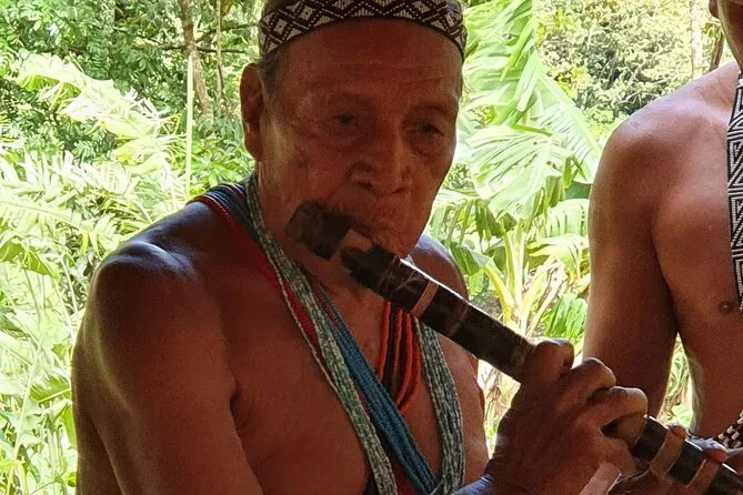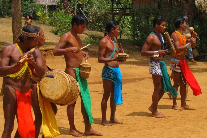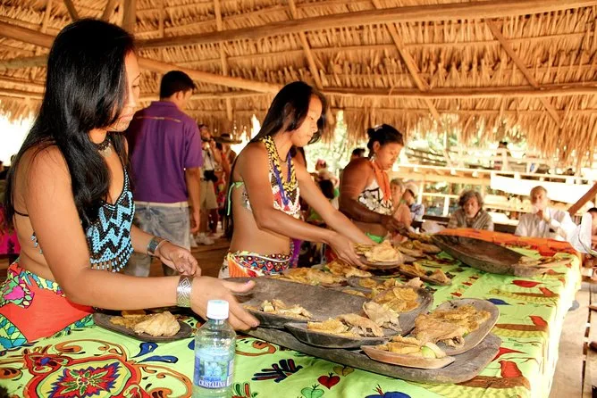The Embera village appears around a bend—bright fabrics drying on lines, kids waving from the bank. There’s music drifting over the water, and when we step ashore, someone hands me a woven bracelet as a welcome. Lunch is simple but good: fish wrapped in leaves, fresh fruit we picked up earlier. The Embera share stories about their traditions—how they make their crafts, what certain tattoos mean. Their laughter is easy, and you can tell they’re proud to show us their world.