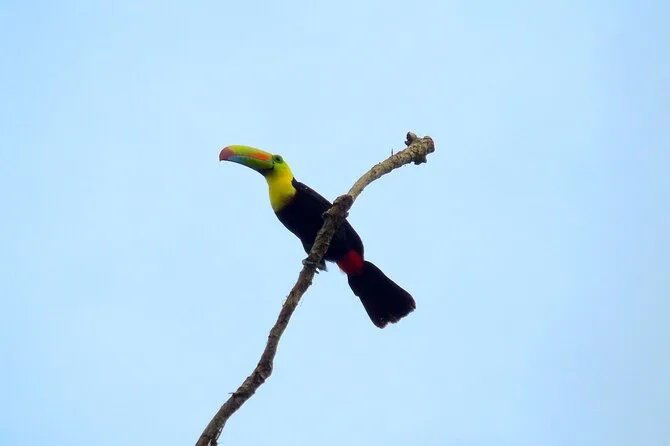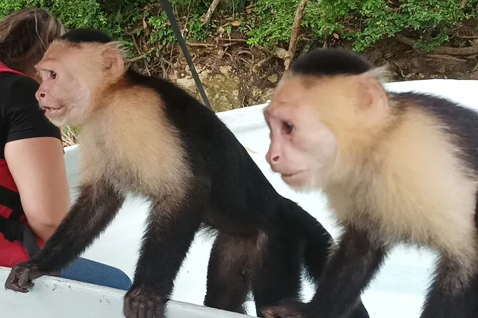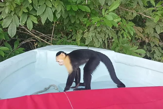 You may see white-faced capuchin monkeys, howler monkeys, Geoffrey’s tamarins, sloths, tropical birds, and sometimes crocodiles.