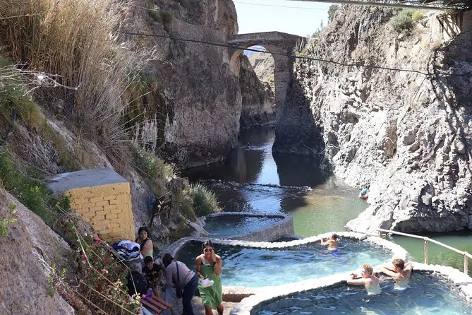 Your day includes hotel pickup in Arequipa, an official local guide throughout, American-Andean breakfast in Chivay, water for the journey, entry to Chacapi Thermal Baths for a soak in volcanic mineral waters, digital photos taken by your guide along the way, plus a buffet lunch featuring regional specialties before returning by air-conditioned vehicle in the evening.