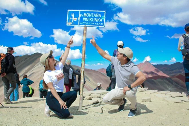 After eating (and more coca tea than I’ll admit), we pile back in for another short ride before starting the walk to Rainbow Mountain. Julio checks if anyone needs extra oxygen — he says some people do at this altitude. The trail starts off easy enough but then it gets steeper; you feel every step in your legs. Sometimes you pass herders with alpacas or even vicuñas if you’re lucky. The air is thin and sharp, but when the sun hits those colored stripes on Vinicunca… well, I just stopped talking for a minute. It really does look unreal — like someone painted it overnight.