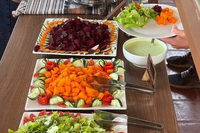 A traditional lunch prepared by a chef is included after descending from Rainbow Mountain.