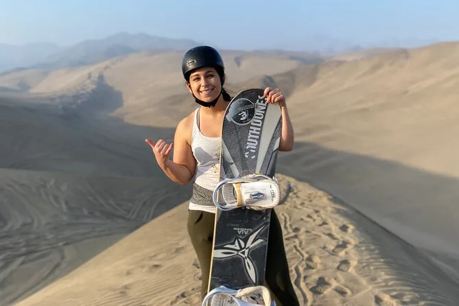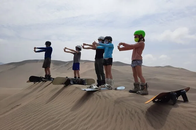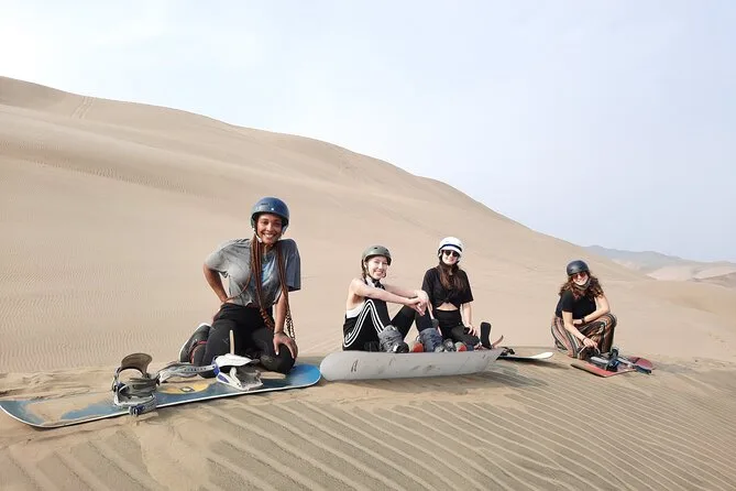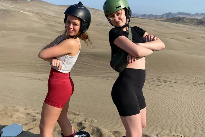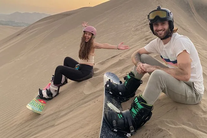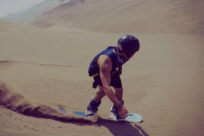 Your day includes private transportation from your hotel or Airbnb in Lima to Punta Hermosa, all necessary equipment like snowboards (for sand), boots, bindings and helmet, fresh fruit snacks and bottled water along the way, plus plenty of photos and videos taken by your guide so you can relive every sandy moment later—then back to your door when it’s done.