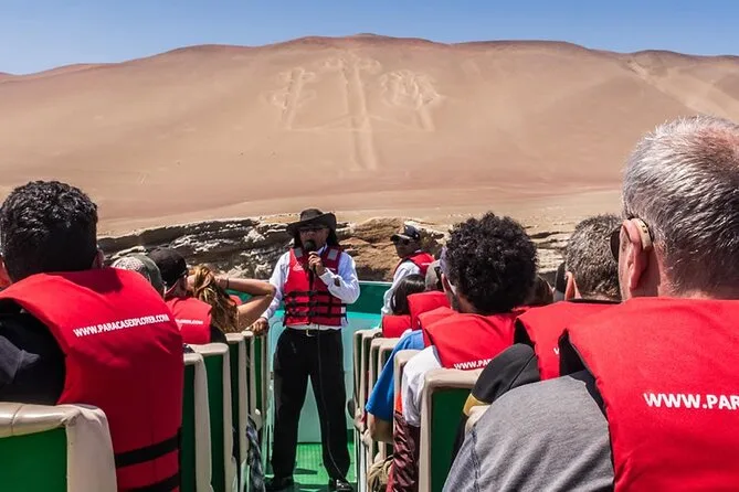 Your morning includes departure from El Chaco dock in Paracas with a local guide leading your group by motorboat toward both the Candelabro geoglyph viewpoint and around Ballestas Islands’ wildlife colonies—all while wearing provided lifejackets before returning to shore together.