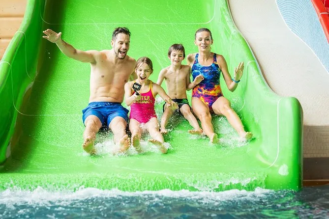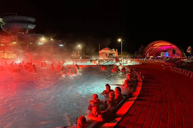 Your day includes hotel pickup and drop-off by air-conditioned minivan from Krakow (if selected), entry tickets to Chocholow Thermal Baths with full access to over 30 pools plus the new Quiet & Relaxation area, plenty of time for swimming or lounging indoors or outdoors, optional poolside DJ party on weekends or evenings, and if you choose Zakopane: vodka plus cottage cheese tasting before heading back home relaxed (and maybe a little sleepy).