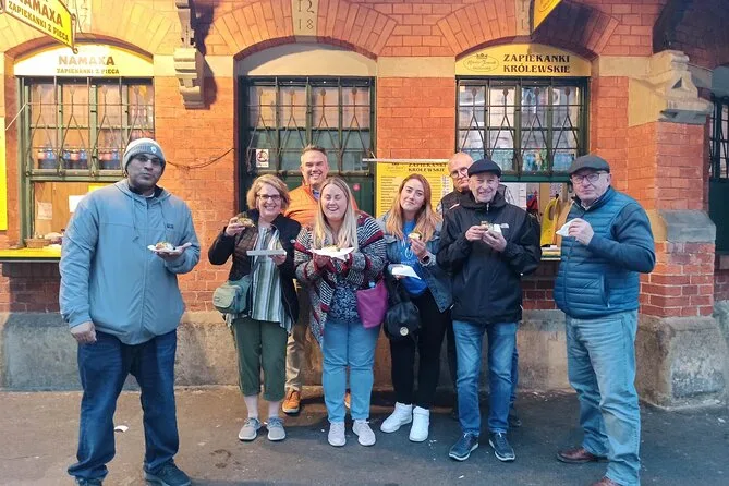 Your evening includes an English-speaking local guide leading you through Kazimierz’s streets with stops for 13–14 different Polish foods plus two vodkas, craft beer, and dessert—all shared in a small group atmosphere that feels more like friends out together than anything formal.