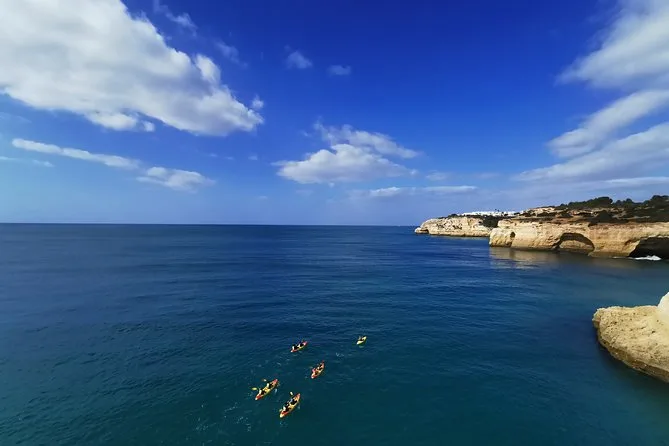 You’ll kayak along Algarve’s coast with a local guide, gliding beneath Marinha’s arches before entering Benagil Cave itself—where you can step onto its sandy floor and look up through that famous skylight. There are stops at hidden beaches and time to listen to stories or just breathe in the salty air. It feels slower than you expect—in a good way.