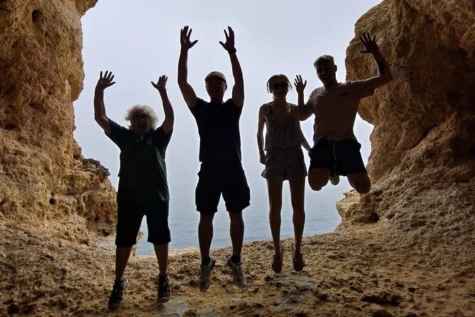 Your day includes comfortable private transportation with pickup from Faro, guided walking stops at Praia da Marinha’s viewpoints and Benagil Cave (from above), strolls through Carvoeiro village plus time for lunch on your own schedule, exploration of Algar Seco’s unique rock formations (with optional cliff jump if conditions allow), and all necessary insurance—so you can focus on soaking up those wild coastal moments without worrying about logistics.
