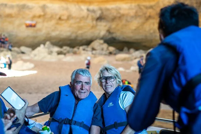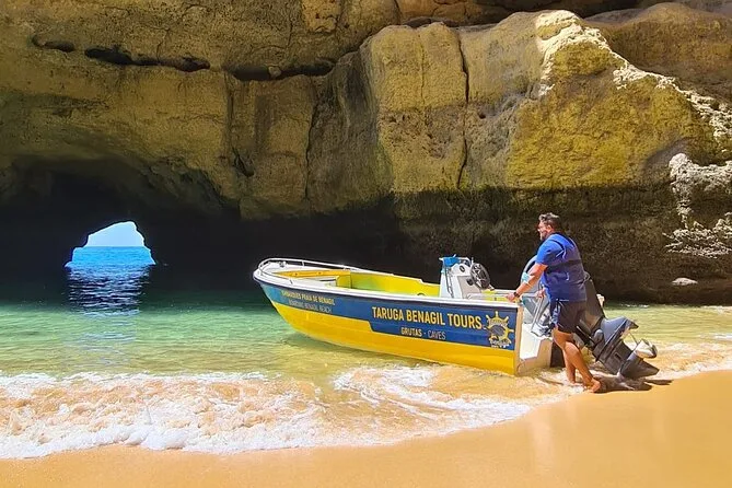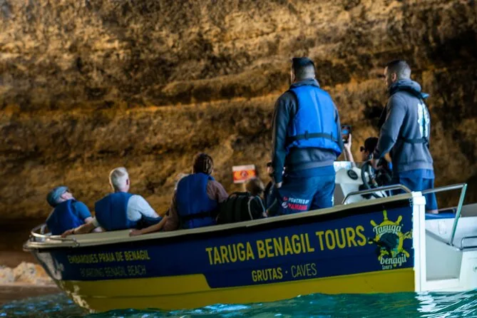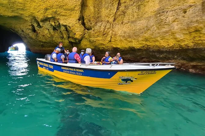 Your day includes boarding at Benagil Beach with a qualified skipper guiding your route through up to 20 Algarve caves and beaches such as Benagil Cave and Praia da Marinha. All fees and taxes are covered along with safety equipment like life jackets; your local guide shares stories along the way before returning to shore at Benagil Beach.