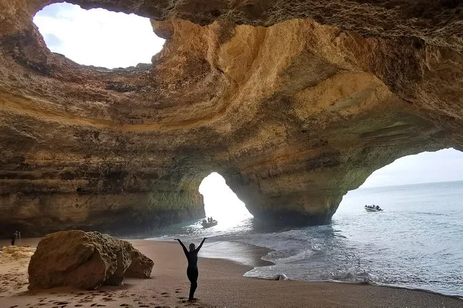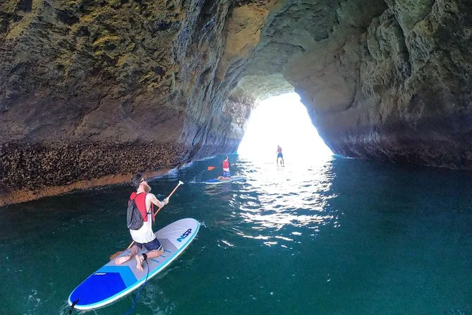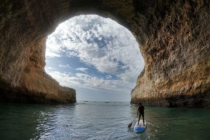 You’ll paddleboard along Benagil’s coastline with a certified guide, learning SUP basics before gliding into sea caves and arches only reachable by water. Expect small group energy, time to pause inside magical grottoes, and even a visit to a hidden sandy beach — plus photos to remember those salty smiles.