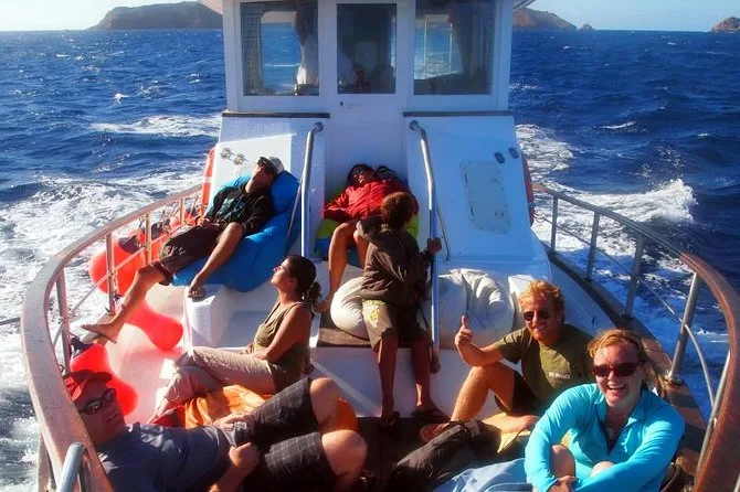 The boat ride takes about 30–45 minutes depending on sea conditions.