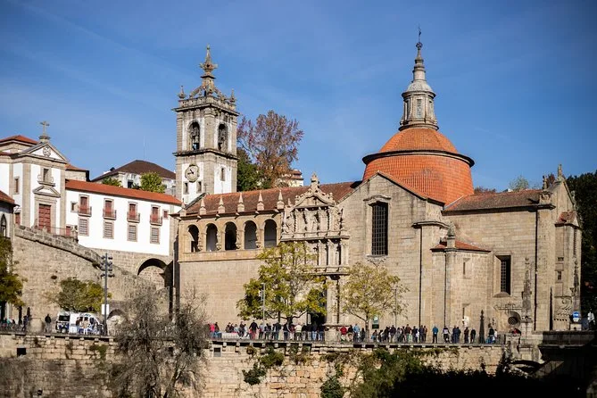 Your day includes pickup arrangements from Porto, guided visits to Amarante’s church and riverside streets, entry to two renowned Douro wineries with tastings of three regional wines each, a hearty lunch with northern Portuguese specialties and local wine, plus a mini bottle of port as a keepsake before heading back in the evening.