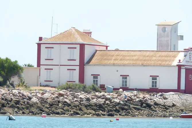 The tour stops at Deserta Island, Farol Island (Ilha do Farol), Culatra Island, plus an oyster culture area.
