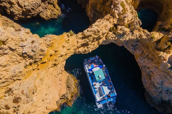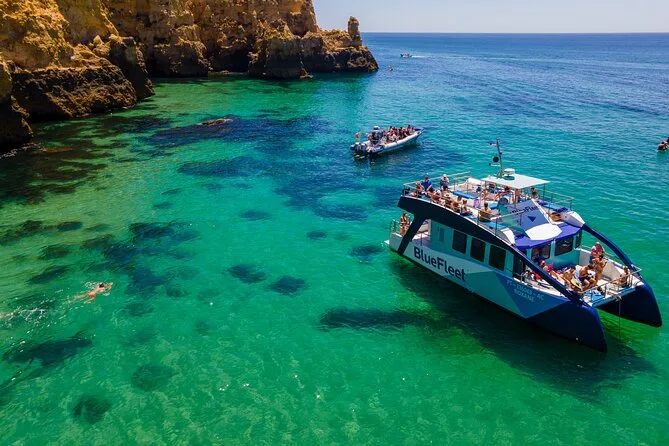 Your day includes live commentary from your local guide as you cruise along Lagos’ coastline past Praia Dona Ana and Praia do Camilo toward Ponta da Piedade. There’s cushioned seating on board plus easy stairs for getting into the water during your swim stop before heading back to port together.