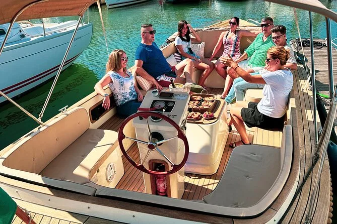 Your day includes a 1.5-hour small group cruise along Lisbon’s Tagus River aboard the comfortable Vicente boat with friendly local crew guiding you past major landmarks; enjoy fresh pastel de nata pastries plus an open bar serving beer, white and rosé wine, coffee, soft drinks like Coca-Cola or Fanta and still water before returning to port together at the end.
