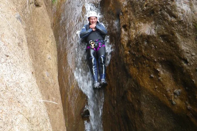 The tour provides wetsuit, shoes, helmet and all technical gear needed for canyoning.