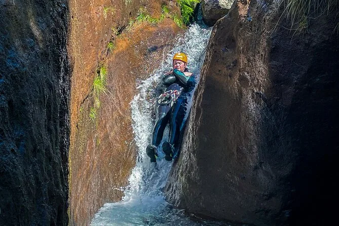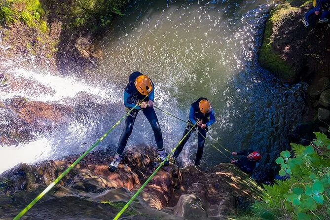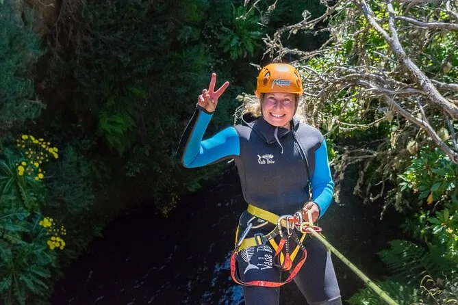 Your day includes pickup from your accommodation in Funchal or Caniço by air-conditioned vehicle, all necessary canyoning equipment (with optional boots available for rent), guidance from two professional multilingual guides throughout five rappels along Ribeira das Cales, plus photos from your adventure before drop-off back at your hotel.