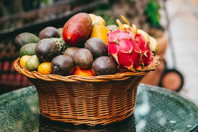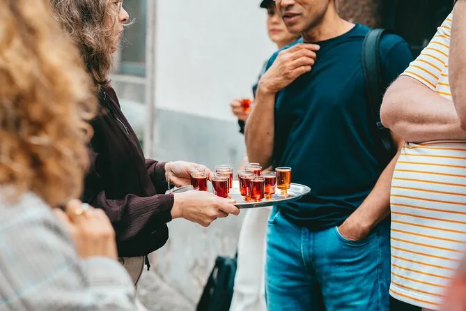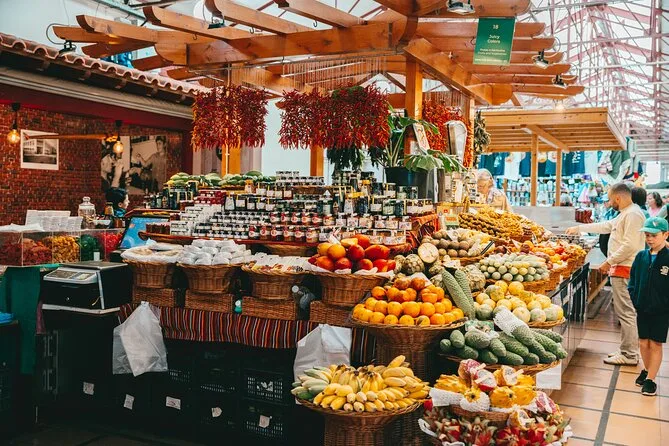 Your day includes all food tastings (fruit from the local market, honey cake, cookies, custard tarts), drinks including madeira wine or non-alcoholic options, guidance from a qualified local guide throughout Funchal’s historic center, plus personal insurance coverage during your walk.