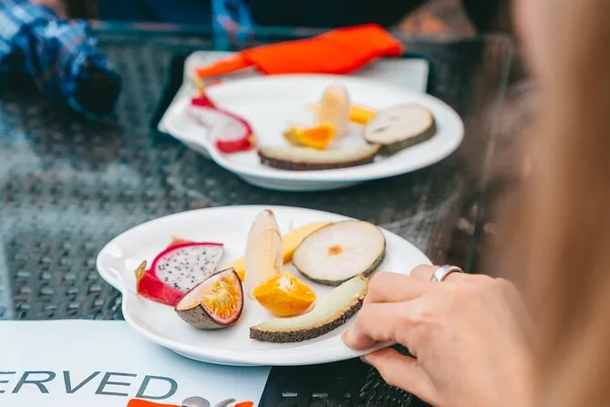 The market was next. It’s louder than you’d expect at 10am; vendors calling out prices, someone slicing fruit with a practiced snap. We tried passionfruit that looked nothing like what I get at home — sharper, almost fizzy on my tongue. Ana explained how they use honey in everything here, even in the chewy honey cake we sampled later (I may have eaten two). She told us about her grandmother making it for Christmas — the way she said “bolo de mel” made me try to repeat it. Li laughed when I tried to say it in Mandarin — probably butchered it.