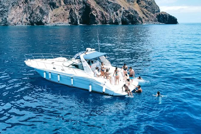 Your day includes meeting at Calheta marina where your professional crew welcomes you aboard a private yacht. You’ll have light refreshments like sparkling wine or local beer, use of snorkeling equipment for swimming stops (with towels and blankets provided), access to cabin facilities including toilet and shower—plus plenty of time to relax or chat with your guide as you look for dolphins and whales along Madeira’s coast before heading back ashore.