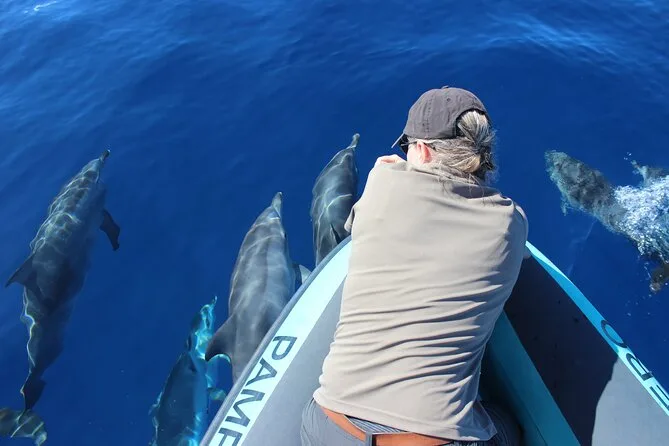 You’ll feel the wind and salt as you speed from Calheta into open sea on a fast RIB boat with a local guide searching for whales and dolphins. Watch wild cetaceans glide past while your crew shares stories over the radio from their spotter onshore. Expect laughter, close-up moments with nature—and memories that stick long after you’ve dried off.