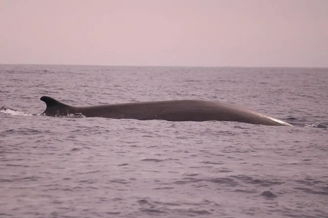 We drifted for a while after that, listening to Joana talk about how these animals are always moving — sometimes you see pilot whales, sometimes bottlenose dolphins if you’re lucky. She told us how the spotter changes position depending on where the animals might be migrating that week. I liked that it wasn’t all planned out or guaranteed; it felt honest somehow. At one point she asked if anyone wanted to try saying “cetacean” in Portuguese — Li from our group gave it a shot and totally butchered it, which made everyone laugh (including Joana). The sun started getting warmer on my neck then, but nobody wanted to head back yet.