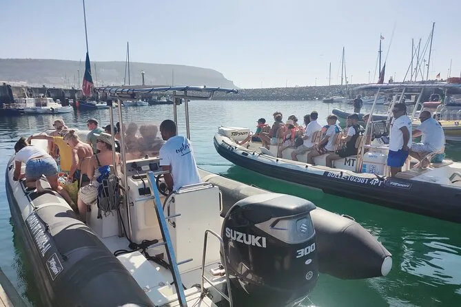 The tour lasts approximately 3.5 hours from meeting at the marine center to returning to Sesimbra harbor.