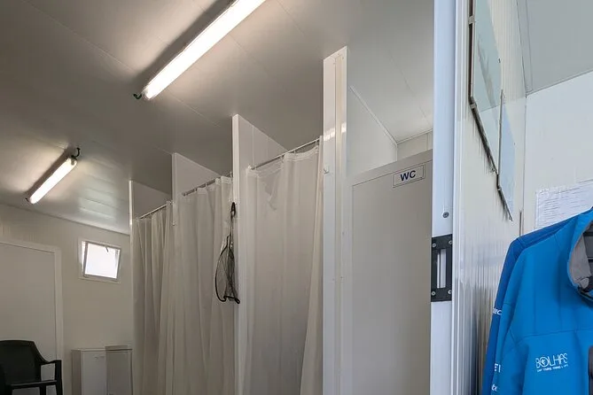 The marine center offers free WiFi, toilets, wind jackets, and guest amenities before departure.
