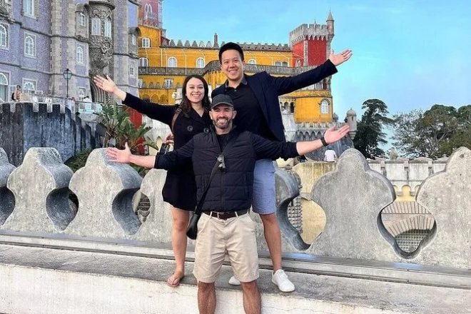 Pena Palace was last — those wild colors are even brighter in person, especially when the clouds break for a minute and everything glows yellow and red against dark green forest. We wandered terraces and walked along the walls (the wind up top is no joke). Rui explained some history but let us wander too; I liked that balance. By then my legs were tired but my head was full — so yeah, if you’re thinking about a Sintra day trip from Lisbon with tickets included, just go for it. I still think about that view over the valley as we left.