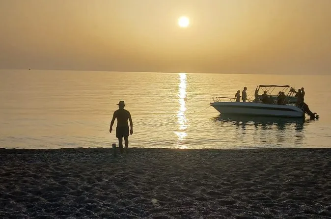 A Praia Krorez tinha uma vibe diferente — céu mais aberto, areia macia sob os pés. Você tem quase duas horas para explorar, seja andando atrás das pedras ou pedindo algo gelado no bar da praia (eu escolhi Fanta, porque sim). Algumas pessoas alugaram espreguiçadeiras; eu só me estiquei na minha toalha e fiquei observando uma criança tentando fazer um castelo de areia que desmoronava o tempo todo. A parada no naufrágio veio depois — confesso que não esperava muito, mas ver aquela estrutura enferrujada debaixo d’água me deu arrepios. Está ali desde a Segunda Guerra, e nadar por cima era uma sensação estranhamente tranquila.