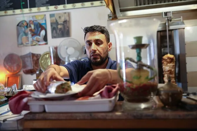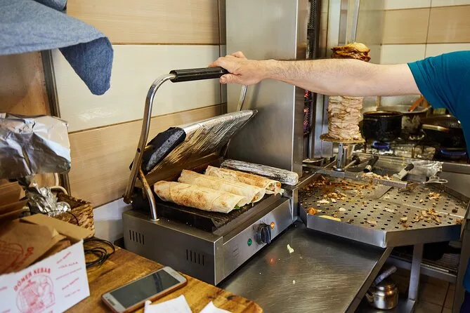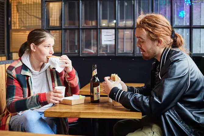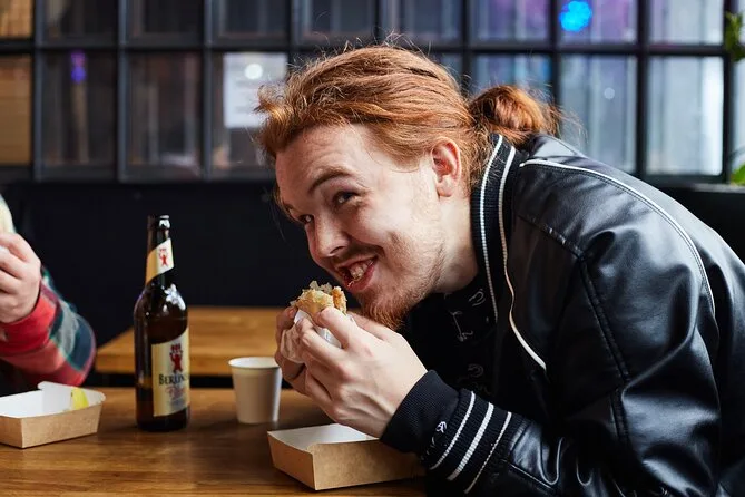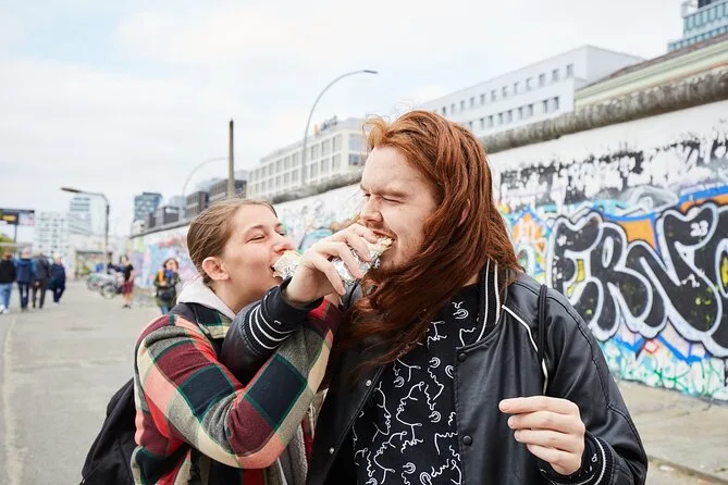 Seu dia inclui um guia local que fala inglês, conduzindo você pelas ruas de Friedrichshain com todas as degustações: currywurst, shawarma döner kebab, mezze sírio, tacos vietnamitas TyTy, burger de schnitzel, além de cervejas Berliner Kindl e artesanais locais — tudo entrelaçado com histórias até a East Side Gallery.