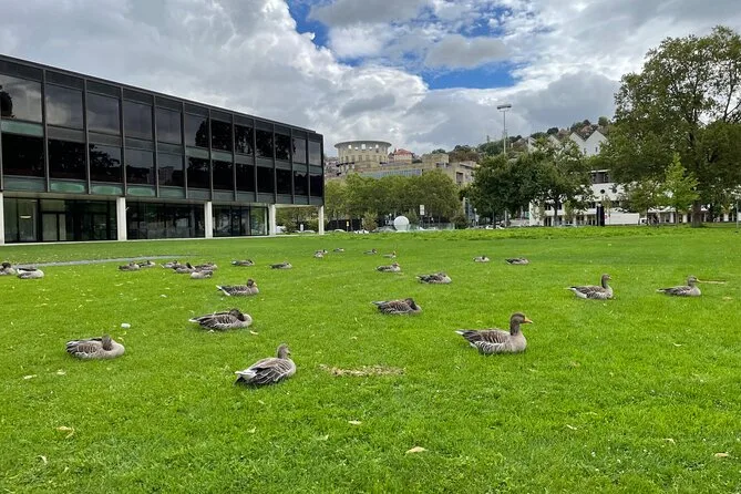 Seu dia inclui um tour guiado de duas horas a pé pelo centro de Stuttgart com paradas nos principais pontos como Schlossplatz, os dois palácios, prefeitura e praça do mercado — com horários flexíveis conforme o idioma escolhido. Todas as rotas são acessíveis para cadeirantes e indicadas para famílias ou viajantes solo.