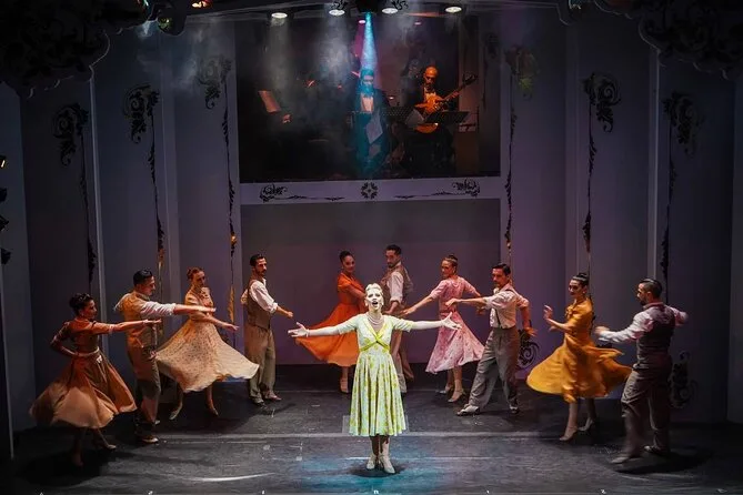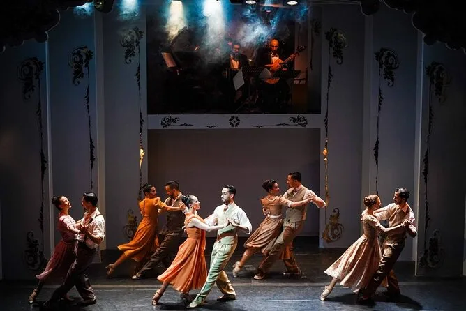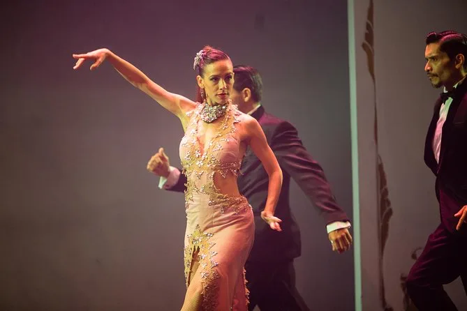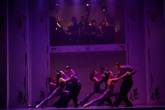Sua noite inclui transfer de ida e volta do hotel em Buenos Aires, entrada no Café de los Angelitos com mesa reservada, show completo de tango com música ao vivo, jantar gourmet opcional com vinhos ou refrigerantes se escolhido, além de café ou chá antes do retorno tarde da noite.