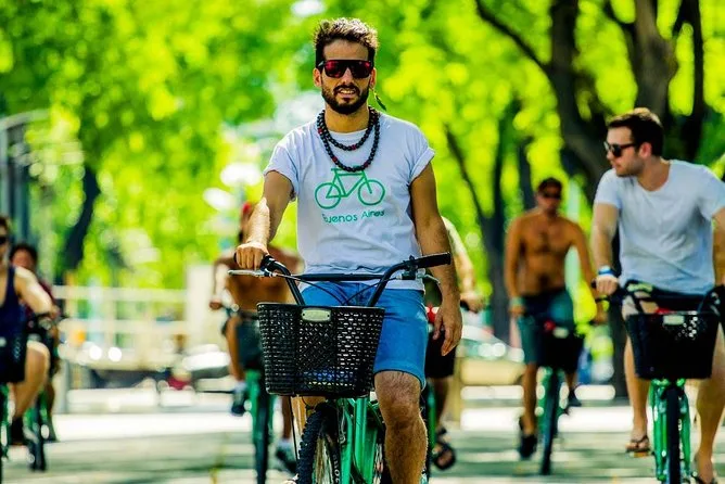 Seu dia inclui o uso de uma bicicleta ajustada ao seu tamanho e capacete para segurança; água mineral para manter a energia; um guia local experiente que conta histórias enquanto você pedala; toda a logística cuidada para você aproveitar o ritmo de Buenos Aires sem se preocupar com mapas ou semáforos.