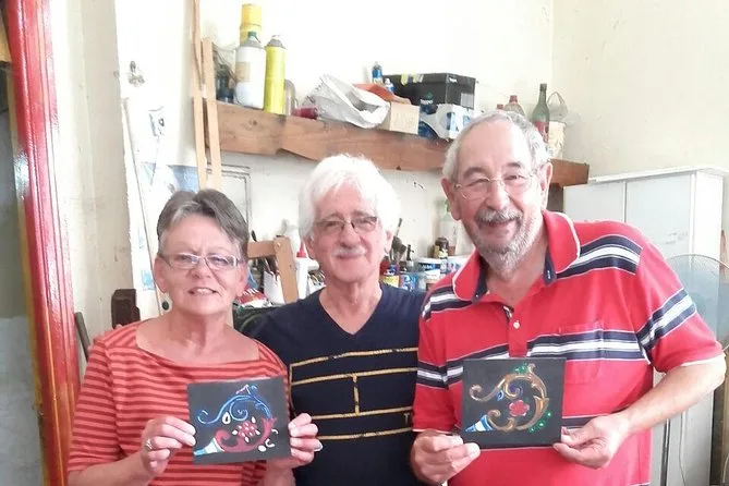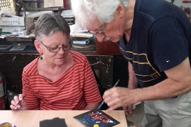 Com certeza — você sairá com sua própria peça pintada como lembrança da oficina do Miguel.