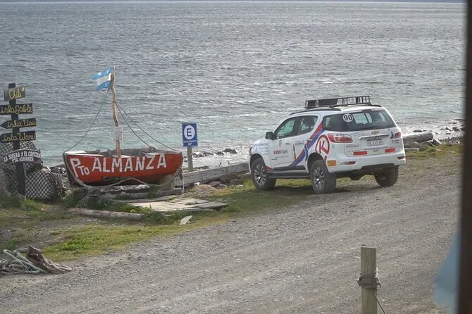 O passeio cobre cerca de 75 km em cada trecho entre Ushuaia e Puerto Almanza, com várias paradas; reserve o dia todo, incluindo ida e volta.