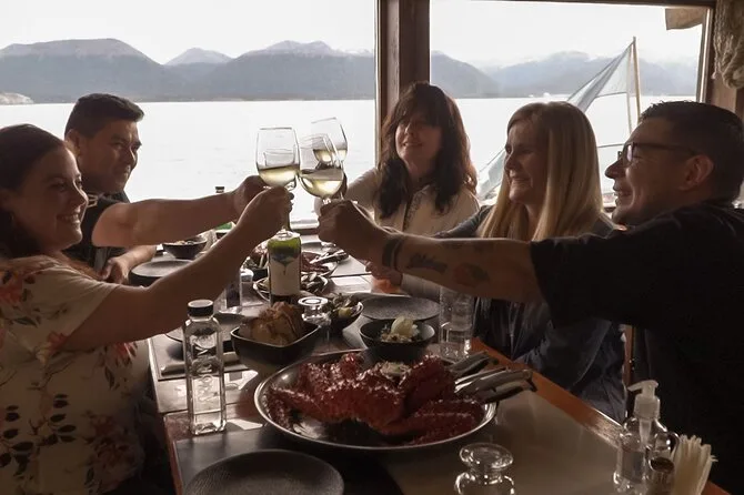 Seu dia inclui busca no hotel em Ushuaia, transporte em 4x4 com ar-condicionado, café ou chá com lanches caseiros na Laguna Victoria, uma taça de vinho por pessoa no almoço de três etapas com frutos do mar e vista para o Canal de Beagle em Puerto Almanza (com entrada de empanada de caranguejo e prato principal), além de uma caminhada guiada fácil pela floresta de lenga até a cachoeira Cascada del Duende antes do retorno à cidade.