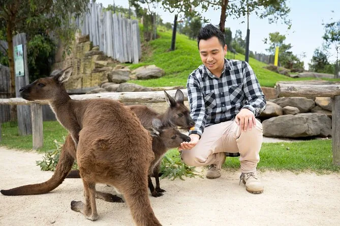 Sim, no Sydney Zoo você pode alimentar cangurus na mão e tirar foto com um coala.