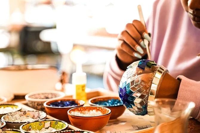Seu passeio inclui todos os materiais para criar sua própria lâmpada turca em mosaico durante esta oficina prática em Fortitude Valley, Brisbane. Você ainda aproveita chá de maçã e biscoitos turcos caseiros, além de total acessibilidade para cadeirantes no estúdio.
