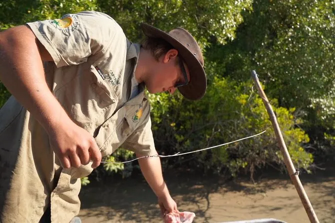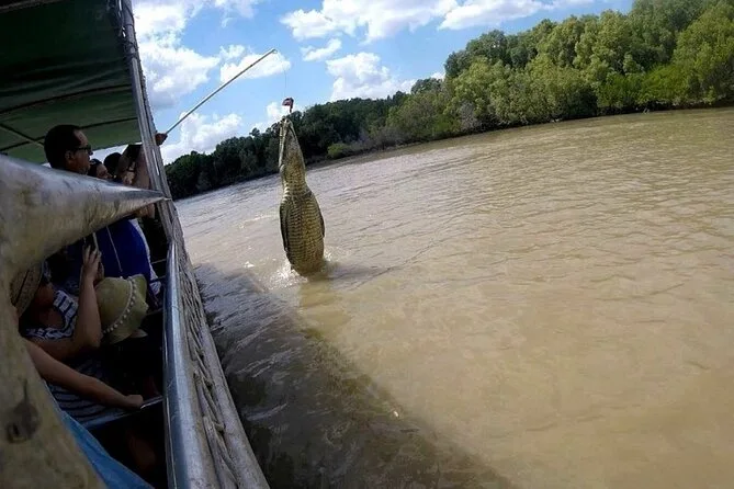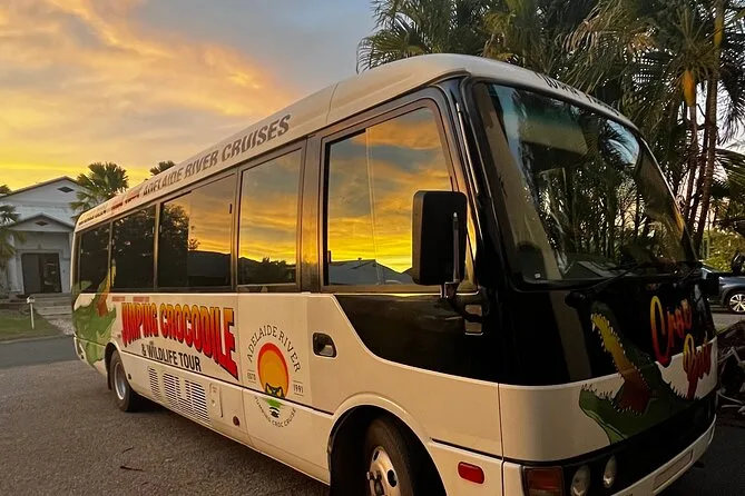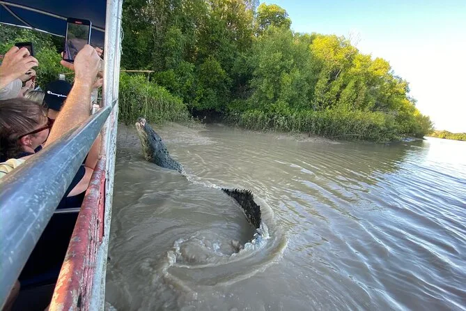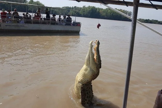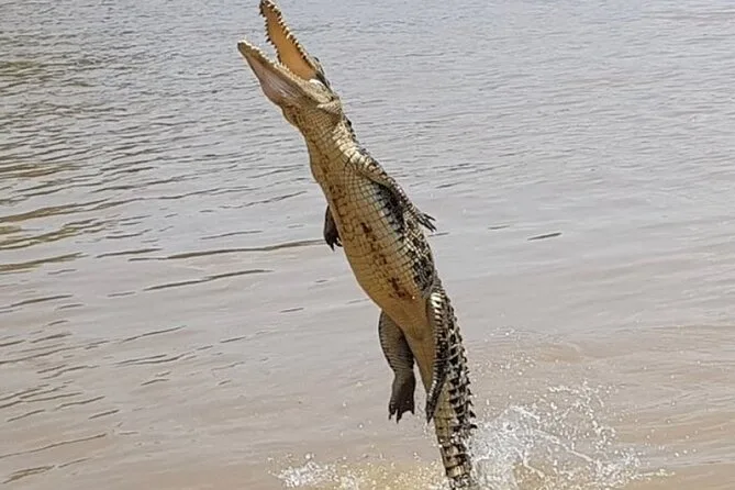 Seu dia inclui transporte em Croc Bus com ar-condicionado saindo de Darwin, entrada na Reserva de Conservação Fogg Dam e um cruzeiro guiado para ver crocodilos saltadores no Adelaide River — com tempo para lanches antes do retorno.