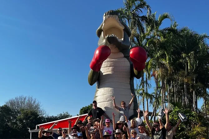 Não esperava rir tanto antes mesmo de ver um crocodilo. A primeira parada foi na enorme estátua do Crocodilo Boxeador em Humpty Doo — sério, é tão estranho que você precisa conferir. Nosso guia, Dave, brincou que é o único croc do Território que você pode abraçar. Peguei um café gelado rápido no posto ao lado (o ar tinha cheiro de poeira e açúcar) e todo mundo voltou para o Croc Bus, com as janelas abertas, do jeito que os locais fazem.