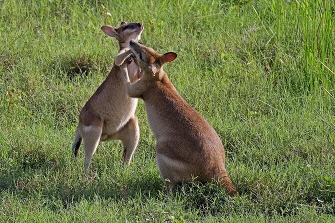Você pode ver mais de 200 espécies de aves, wallabies, répteis, búfalos e muito mais.
