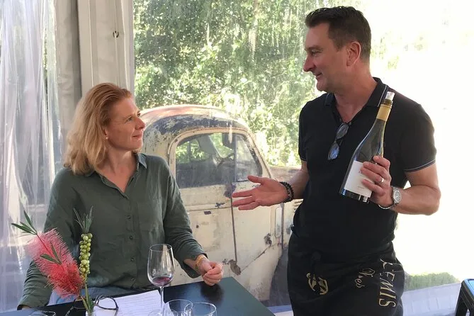O dia terminou em uma pequena vinícola com fileiras de parreiras descendo suavemente pelas colinas. Degustamos vinhos tintos locais ao ar livre, enquanto sabiás cantavam por perto. A essa altura, todo mundo estava relaxado—talvez pelo vinho, talvez pelo ritmo tranquilo do dia. Na volta para Sydney, o WiFi nos permitiu compartilhar fotos na hora, embora, sinceramente, algumas coisas são melhores guardadas na memória.